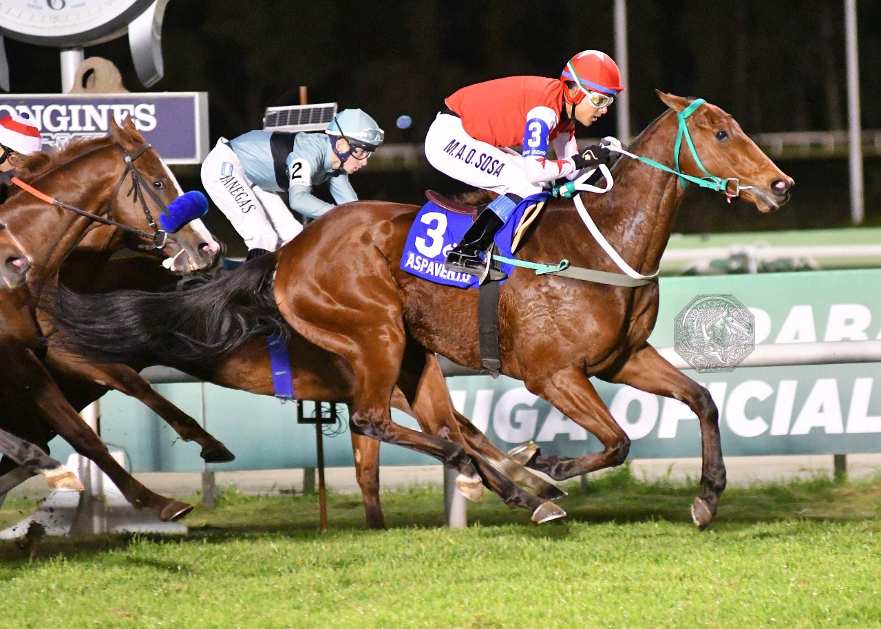 Cuando aceleró en la recta final, Aspavento fue imparable en San Isidro. El representante del stud Tinta Roja, que ya había conquistado este año un Grupo 3 en el césped de Palermo, esta vez se impuso en la grama del Jockey Club, superando por tres cuartos de cuerpo a Marignac. El zaino, que concretó la mejor de sus seis conquistas en la noche norteña, es hijo de Remote y primera cría de la yegua Awesome Tracy (Awesome Again).
