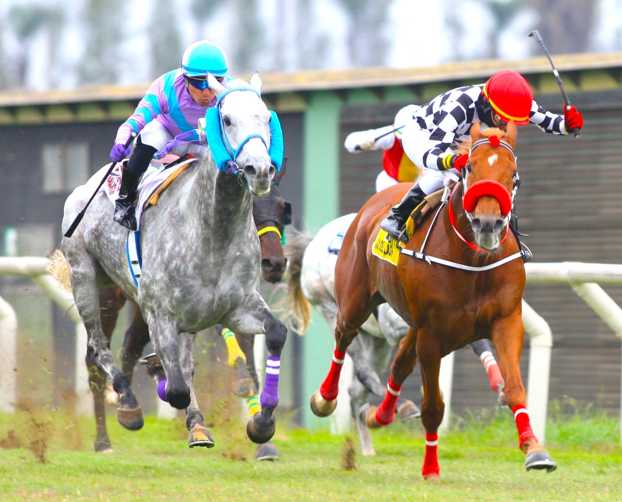 En Perú, otro 1-2 de nuestras crías en una prueba de Grupo. Esta vez, en el Clásico Presidente de la República (G2), cuyos 2400 metros fueron dominados por medio cuerpo por el tordillo Master Kalath por medio cuerpo sobre su hermano paterno Ojo del Milagro, en otro 1-2 también para el padrillo Mastercraftsman. Representante del stud Los Mucas – Ju Ya, el caballo avanzó sobre el puntero en el tramo final para sumar el sexto triunfo de su campaña. Esa cosecha incluye otros tres clásicos en diferentes recorridos, el Almirante Miguel Grau Seminario (G2-2000m), el Pedro García Miró (G3-1800m) y el Santorín – Augusto Maggiolo Cavenecia (G3-2800m).